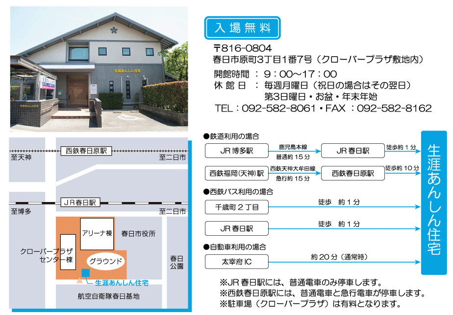 春日市「クローバープラザ」内にて、人と環境にやさしい「安心・安全な住まい」「環境に配慮した快適な住まい」「地産地消の住まい」の形をご提案しています。